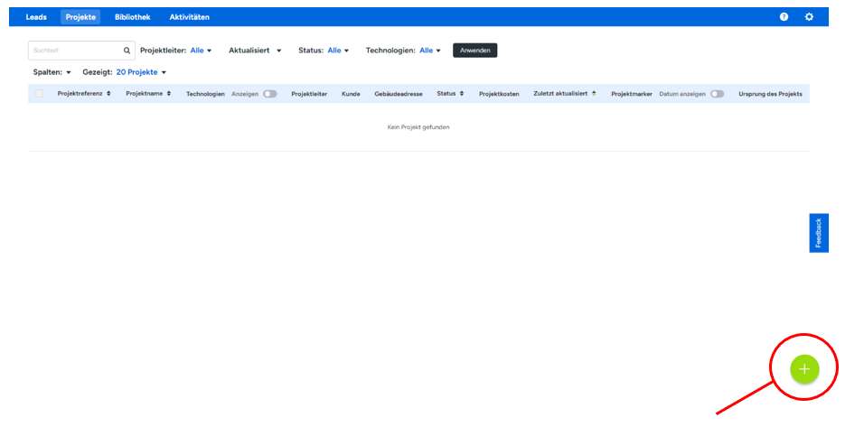 Erstellen Sie ein neues Projekt über den grünen + -Button unten rechts.