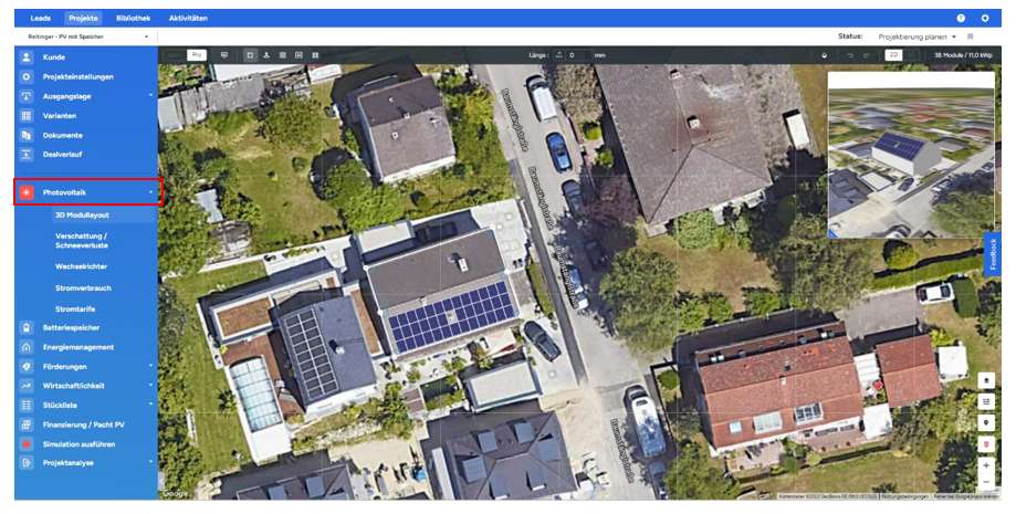Um ein Solarprojekt schnell und effektiv zu planen, gehen wir in der linken
