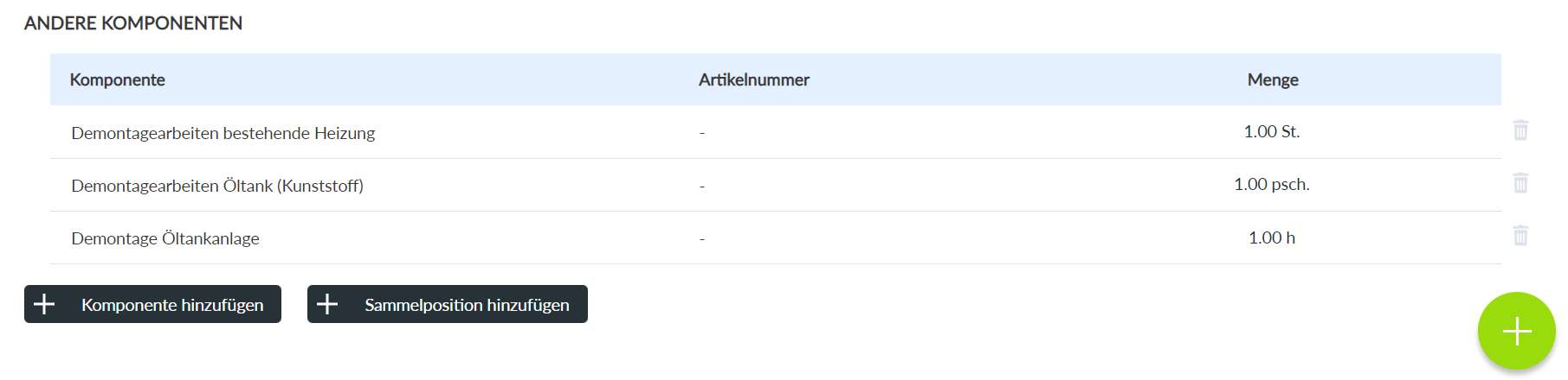 - Gruppen helfen mehrere Komponenten vom Typ Andere Komponenten zu gruppieren und mit einem Klick zur Stückliste hinzuzufügen, wie unser Beispiel PV-Anlage Standard aufzeigt (Link zum Video).