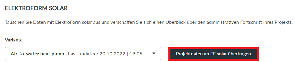Nach der Anmeldung bei Brunner Informatik gelangen Sie automatisch wieder zurück in den Eturnity Expert und können mit Klick auf den Button Projektdaten übertragen, mit dem Übertragen von Projekten beginnen.