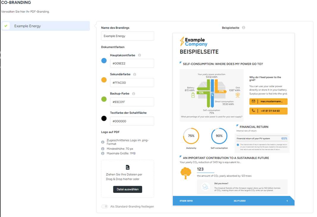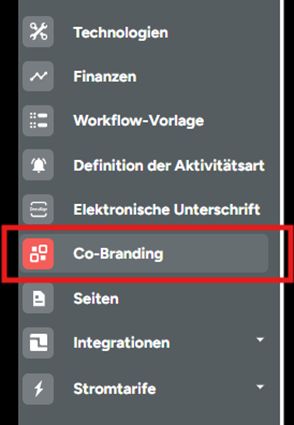 Sollten Sie die Auswahl „Co-Branding“ in den Einstellungen nicht vorfinden, wurde das von Ihrem Owner so festgelegt. Dann können Sie nur die vordefinierte Vorlage verwenden.