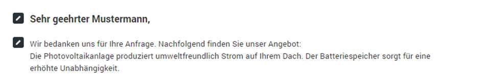- Erstellen eines individuellen Angebotsdokumentes