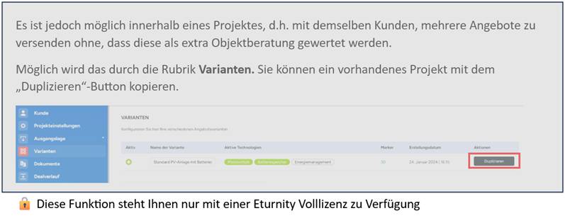 Einspeisetarif innerhalb des jeweiligen Projekts eingestellt werden. Es gibt