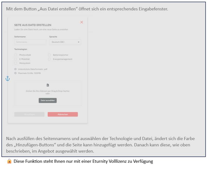 Mit einem Klick auf „PDF-Seiten von einem Dokument hinzufügen“ ist es möglich auch ein bereits vorgefertigtes Layout zu verwenden. Diese Vorlagen können Sie über unseren Support anpassen lassen.