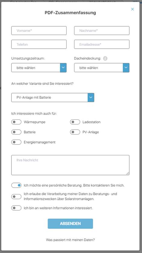 Die benutzerdefinierten Fragen sind in der Version 1.3 für den Solarrechner und in der Version 1.2 für den Heizungsrechner integriert.