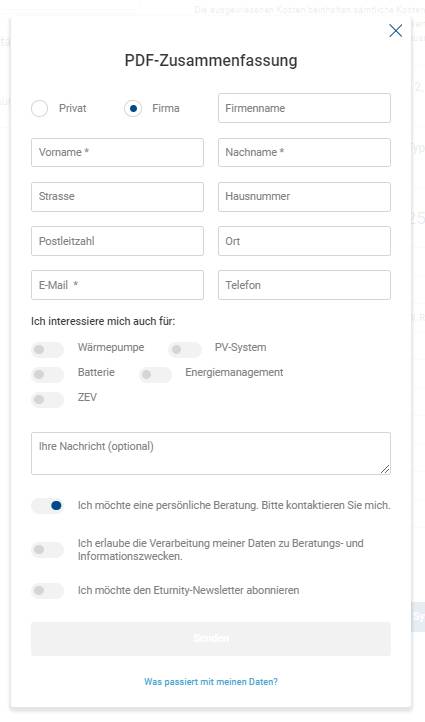 Zusammenfassungsmail an den Kunden (z.B. Installateur):