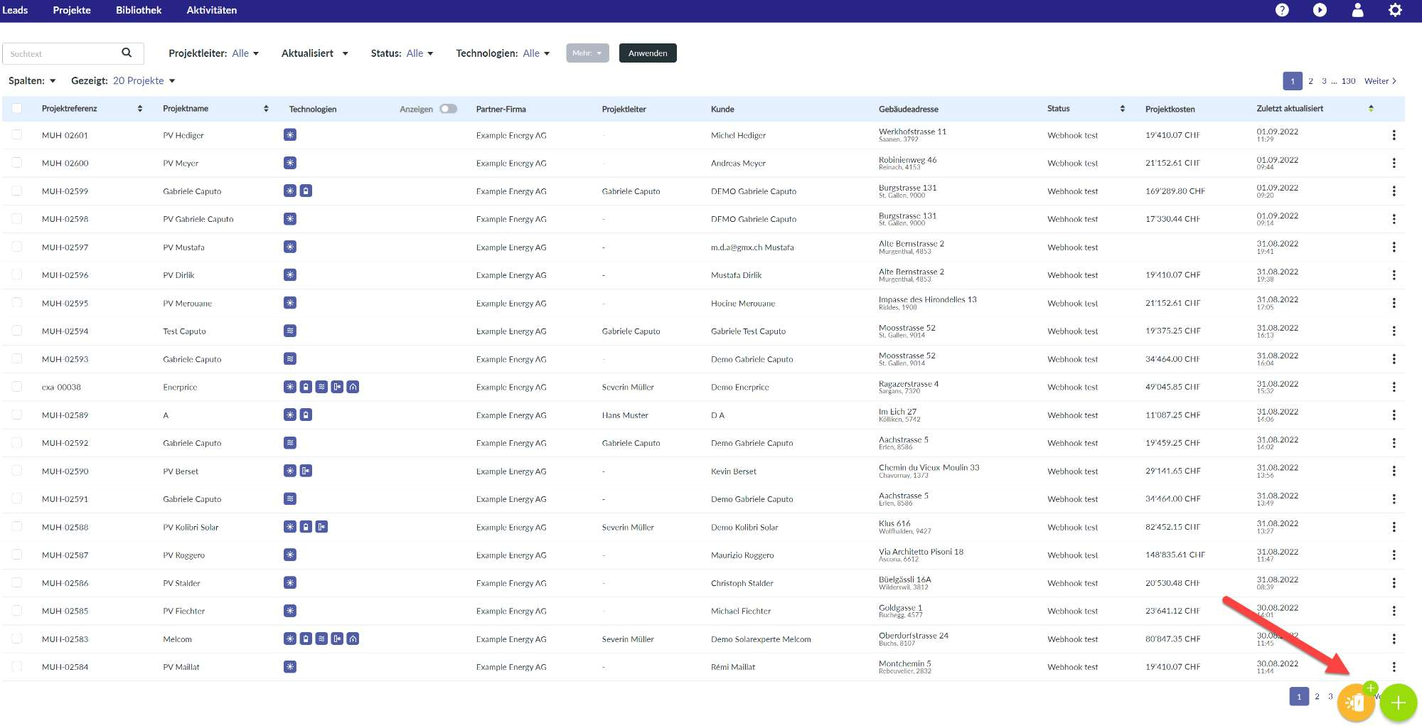 1 . To create a project in the Eturnity heating expert, click on the green + button at the bottom right.