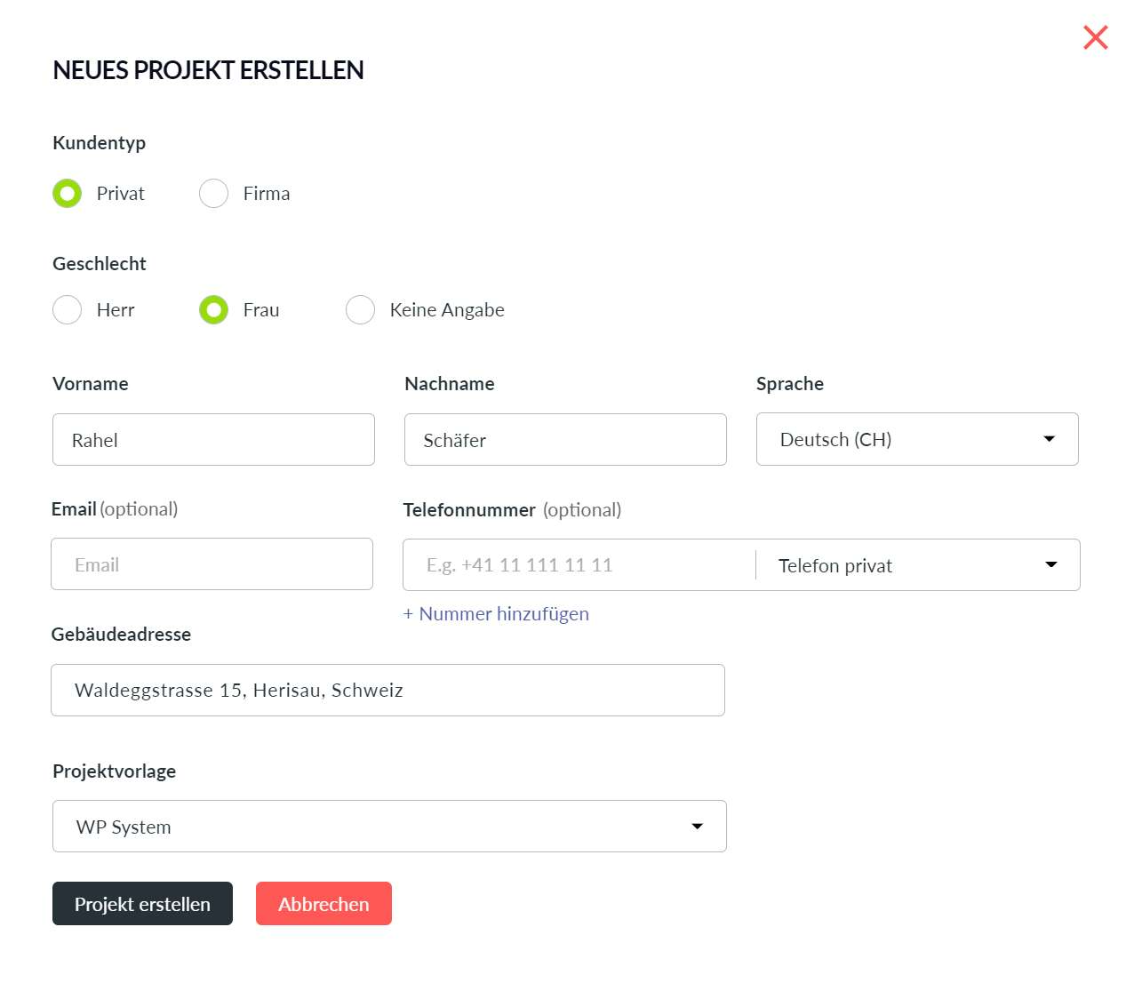 2. A new window pops up and you fill in the relevant customer details, select a project template and click onCreate Project.