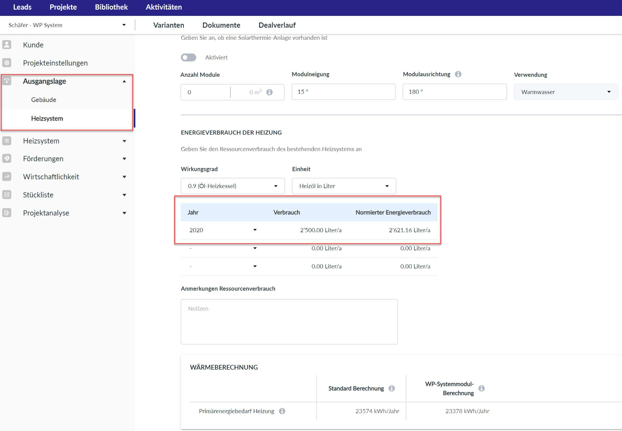4. A reference year with the annual consumption must be provided under initial situation heating system.