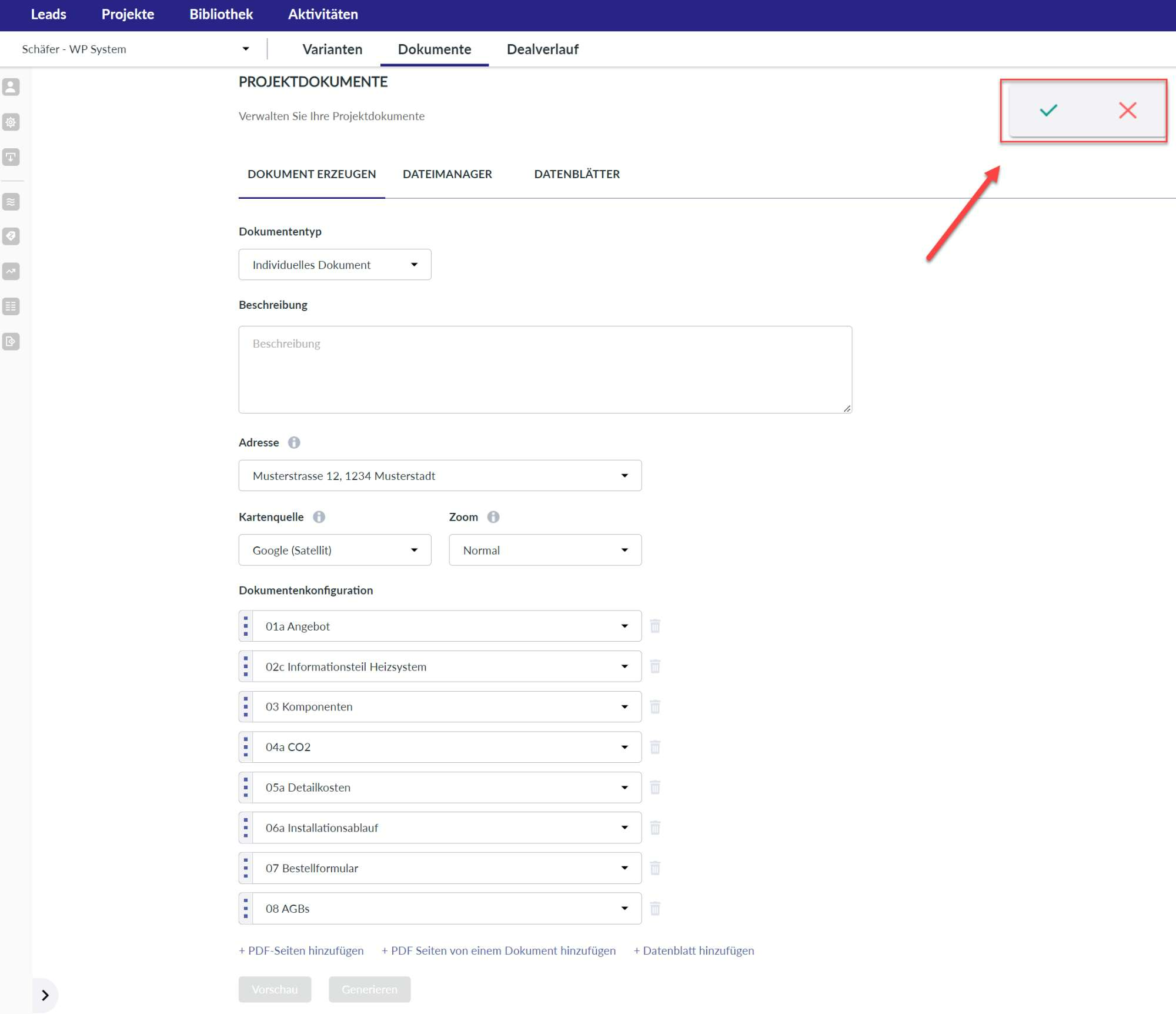 7. Finally, a document such as an indicative offer, a quotation or an order confirmation can be generated under Documents.