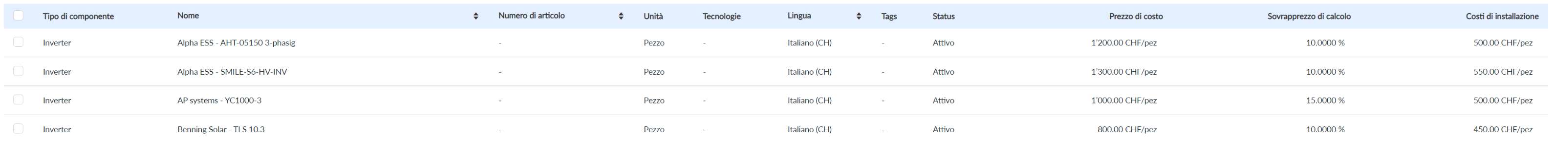 Si noti che solo i componenti con una sola pausa prezzo possono essere modificati direttamente nella panoramica. Per i componenti con più prezzi, viene visualizzato un link alla vista dettagliata.