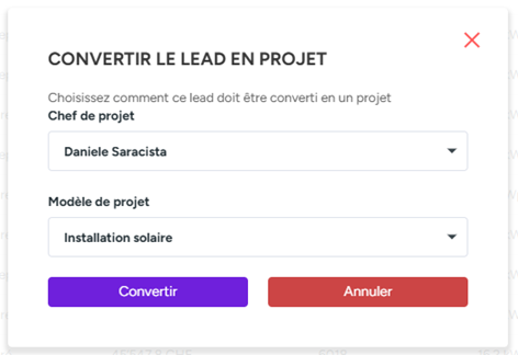 - Cliquez sur le lead transformé en projet pour en extraire les données clients et autres informations utiles.